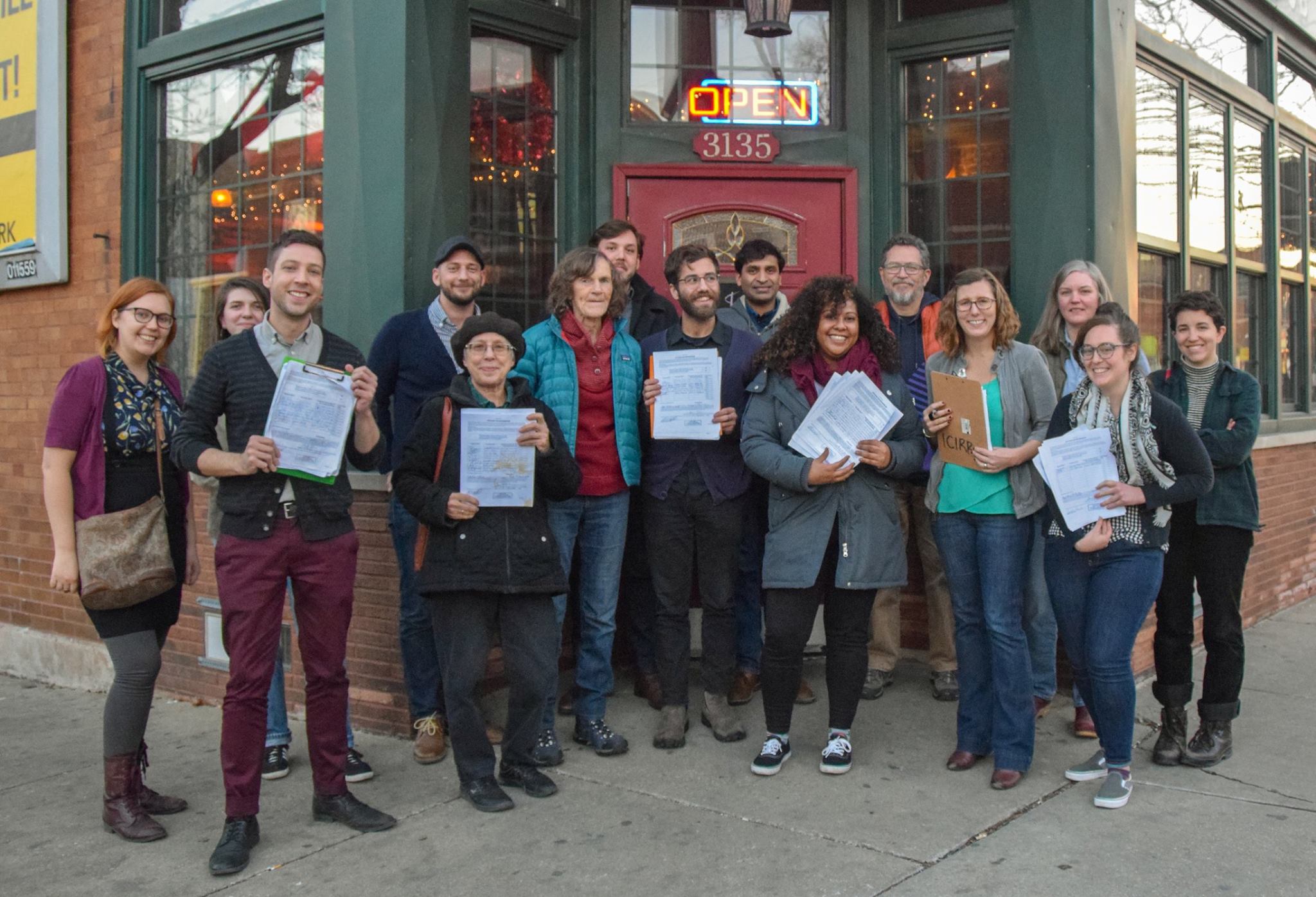 In late 2017, 33WF already had its eyes on the 2019 aldermanic election. The hope was that this referenda mobilization would help us train more members on organizing canvasses, talking to neighbors at the doors, and even testing out an early version of the precinct captain program. We would designate certain members to regularly hit the doors in their precinct, get to know their neighbors, and hit weekly signature goals to get the referendum on the ballot. This was before 33WF had its own office, so our Saturday canvasses happened out of the Christ Lutheran Church. Thanks to Rebecca Burns and Chris Poulos, who attended a Chicago DSA meeting to spread the word, we were often assisted by DSA members as well!