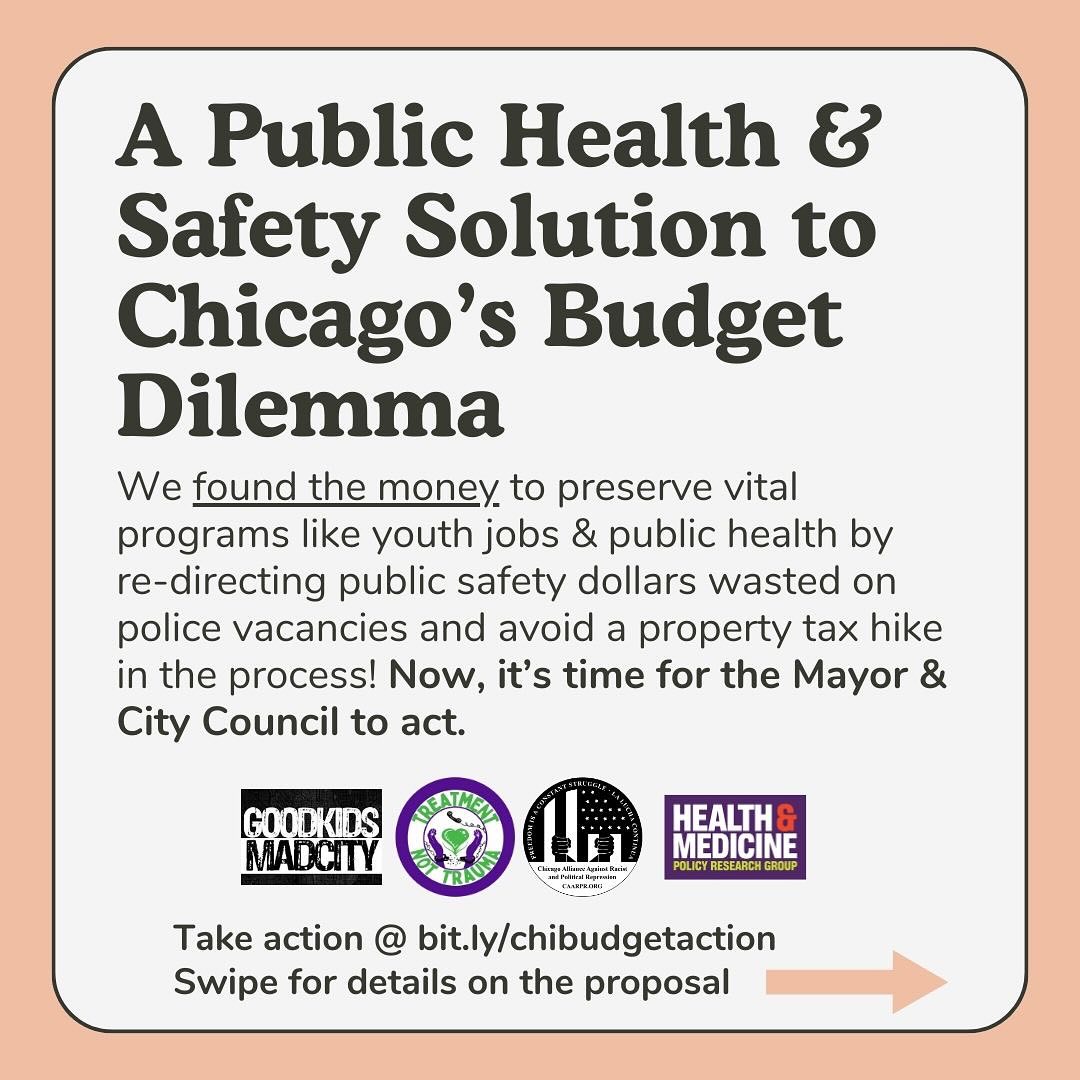 As reported by The Triibe, a coalition committed to public health and safety (Collaborative for Community Wellness, GoodKids MadCity, and the Chicago Alliance Against Racist and Political Repression) has identified $170 million allocated in Chicago’s 2025 budget for +1000 vacant police officer positions. There is no way for the Chicago Police Department to hire more than 1000 people over the next year, especially as recruitment has been consistently down year-over-year (failing to retain ~320 officers per year)! This money could be redirected to prevent property tax hikes, support youth jobs and violence prevention, preserve the Guaranteed Income program, and provide the Department of Public Health with the resources to address the City’s life expectancy gap.
