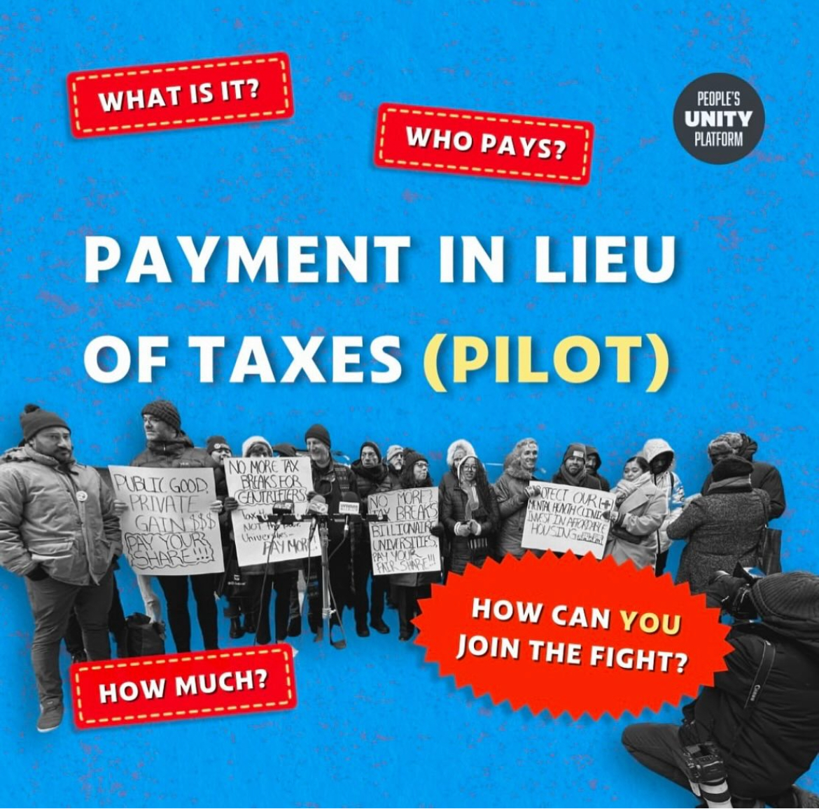 Grassroots Collaborative and the People’s Unity Platform have also put forward a Payment In Lieu of Taxes (PILOT) agreement. Many wealthy institutions operate in Chicago without paying any property taxes, such as the University of Chicago, Northwestern University, Loyola University, etc. While they occupy hundreds of acres of land and own billions of dollars in property, these wealthy institutions are exempt from property taxes! In other cities, these institutions have been pushed to pay their fair share, and in Chicago, that could add up to approximately $160 million.